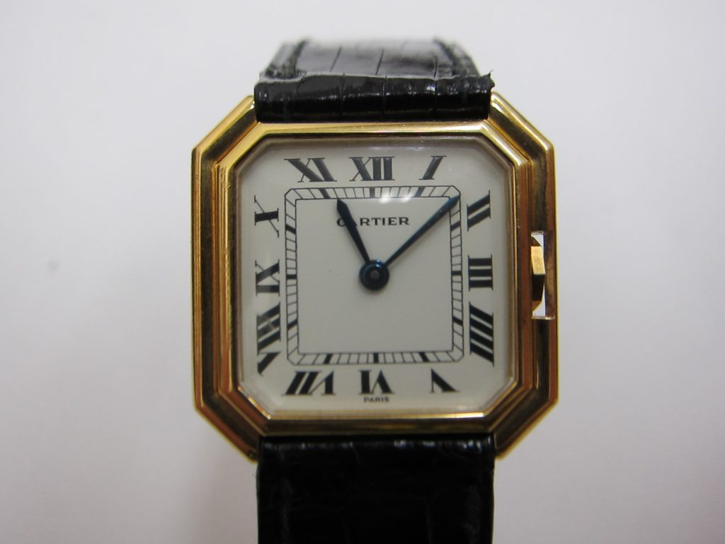カルティエのサンチュールは、2重構造のベゼルの中にリューズを収めて左右対称のアウトラインを描いた、スクエアケースの角を落としたようなオクタゴンケースが特徴の、1970年代に登場した手巻きのアンティークモデルです。