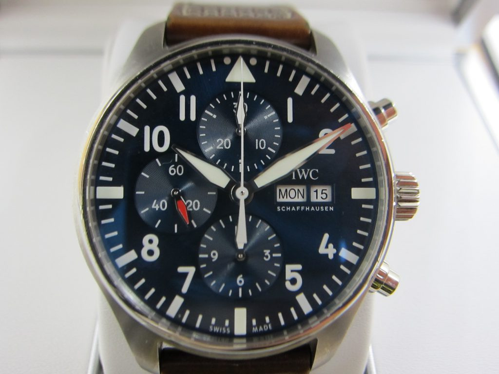 こちらのパイロットウォッチ・プティプランスは、ステンレススティールケース、純正ストラップともに、概ね良好な状態で、箱や保証書も揃っておりましたので、しっかりと高額査定させて頂けました。