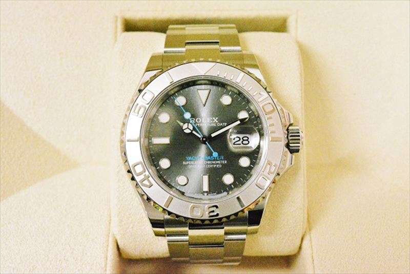 現行品のヨットマスター126622はダークロジウムとブライトブルー文字盤の2パターン展開していて、特に人気なのが今回買取しましたダークロジウム文字盤が人気です。