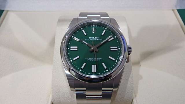 ロレックス 124300 オイスターパーペチュアル41 グリーンダイアル国内税込定価¥676,500-