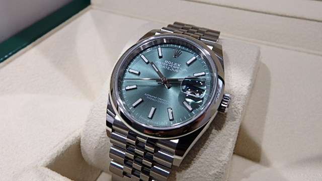 ロレックスデイトジャスト36ミントグリーン126200ジュビリーブレスの未使用品は2022年の新作の文字盤で、オイスターブレスとジュビリーブレスで販売されております。