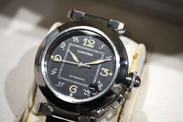 買取させて頂きましたカルティエパシャCW31043Ⅿ7ブラック文字盤は一時期人気があった時計です。