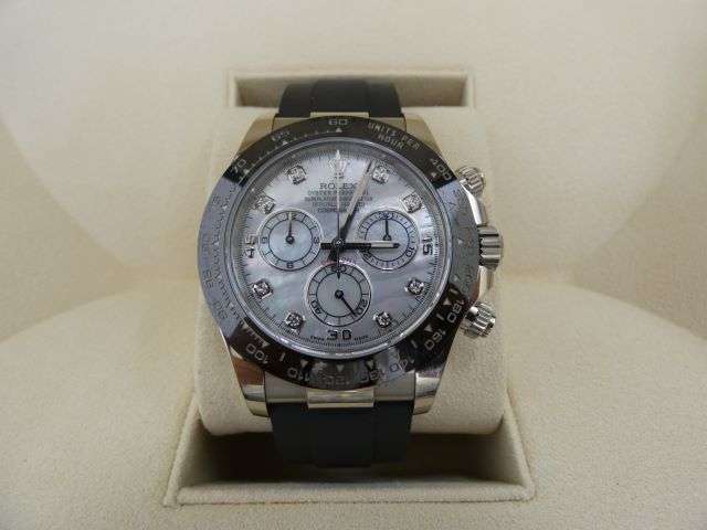 116519LNNGとは、Ref.116519LNに、ダイヤモンド入りホワイトマザーオブパール文字盤(ホワイトシェル+8Pダイヤ文字盤)が合わさったモデルの通称名です。