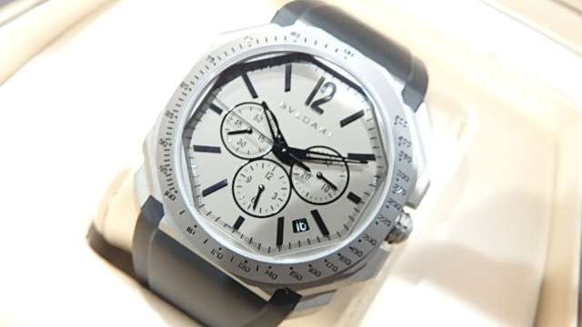 今回買取させて頂きましたブルガリオクトヴェロチッシモ102859はクロノグラフモデルで、グレーカラーが特徴の時計になります。