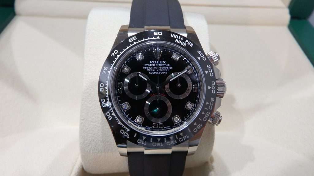 現在定番人気の116519LNスチール&ブラックと、116519LNダイヤモンド入りブラックとでは、定価こそダイヤ入りの方が236,500円高いですが、ダイヤ入りブラックは昔からあるので新鮮味に欠けるということもあって、買取相場はほぼ同額、もしくはスチール&ブラックの方が高い場合もあります。