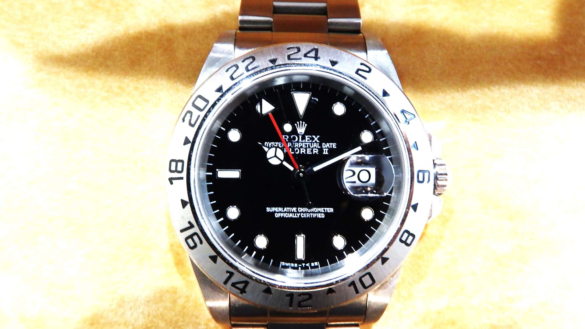今回買取させてい頂きましたロレックスエクスプローラーⅡ16570ブラック文字盤はW番(1994年から1995年)で、夜光塗料にトリチウムが使用されている時計になります。