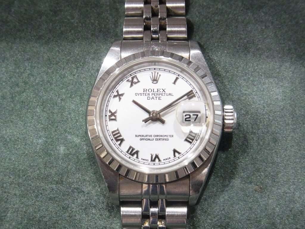 今回買取させて頂いた79240は、白文字盤にローマンインデックスとジュビリーブレスという組み合わせのお品でした。ベゼルにエンジンターンドベゼルが採用されていることでエレガントな印象とカジュアルな印象を併せ持った個体となっております。