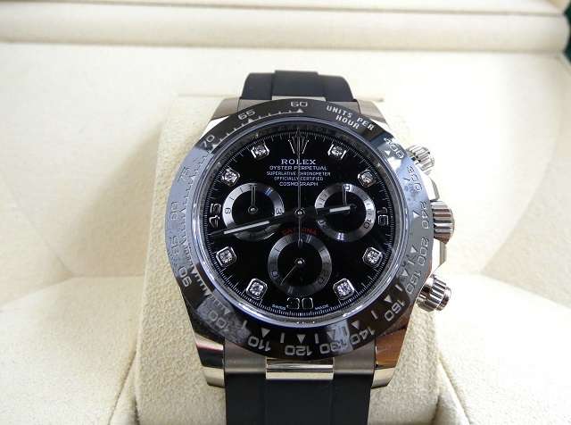 今回買取させて頂いたRef.116519LNGは、ケース素材にホワイトゴールド、ブラックダイヤルに8Pダイヤ、オイスターフレックスブレスという組み合わせのラグジュアリー感溢れるモデルでした。