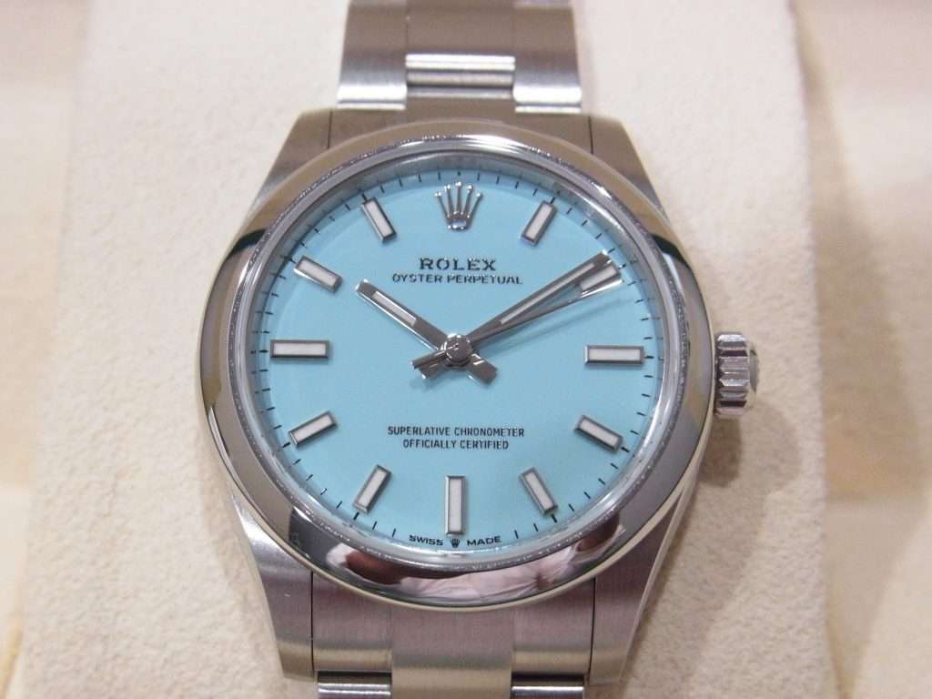 今回買取させて頂いたRef.277200は、ケースサイズ31㎜のボーイズサイズですがユニセックスで着けられるサイズ感ですね。ダイヤル(文字盤)は、豊富なダイヤルカラーの中でも1、2位を争う人気のターコイズブルーです!