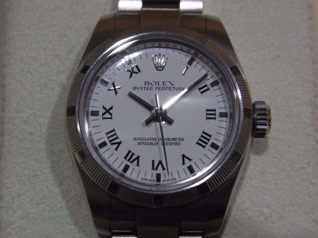 日付表示がない(ノンデイト)シンプルなデザインが魅力的でシーンを問わず着用できるレディースモデル「オイスターパーペチュアル Ref.176210 ホワイトローマ 」を買取いたしました。