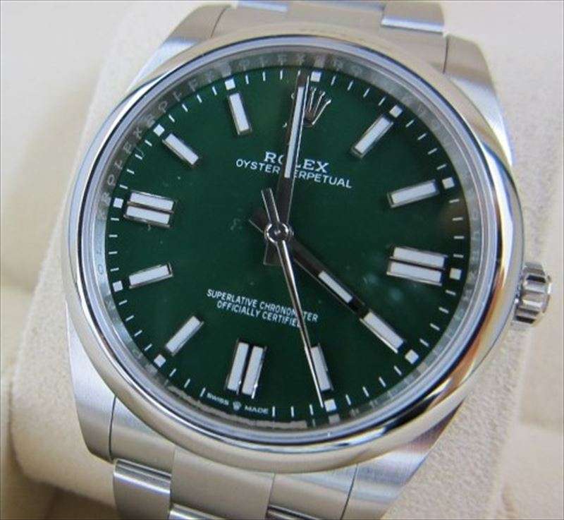 ロレックス オイスターパーペチュアル41 124300 グリーン文字盤 未使用品 買取価格¥1,180,000-