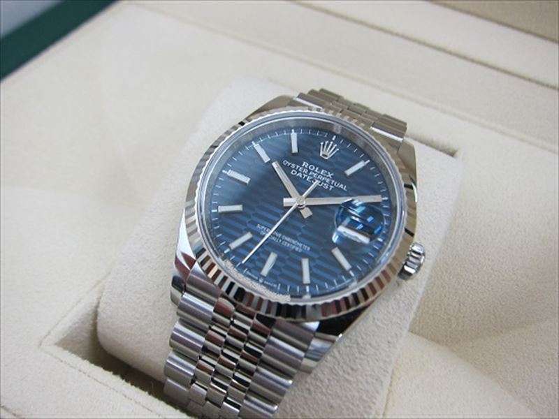 ロレックス 126234 デイトジャスト36 ブライトブルーフル―テッドモチーフダイアル 未使用品 買取価格¥1,230,000-