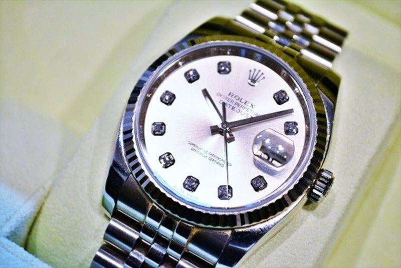 ロレックス デイトジャスト 116234G シルバー文字盤10Pダイヤ 中古品 買取価格 ¥950,000-