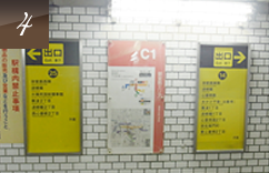 突き当たりを右方向「14番出口」の階段を上がり、地上に出ます。