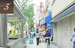 出口から20mほど進むと散髪屋さんとバッグ屋さんの間に大阪本店がございます。