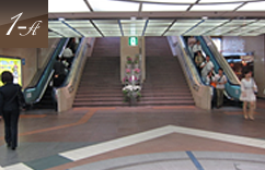 【阪神電車ご利用の場合】西口改札より出て、OPA手前の十字路を左に曲がります。続いてsancicaの中を100mほど進み、階段を上ります。